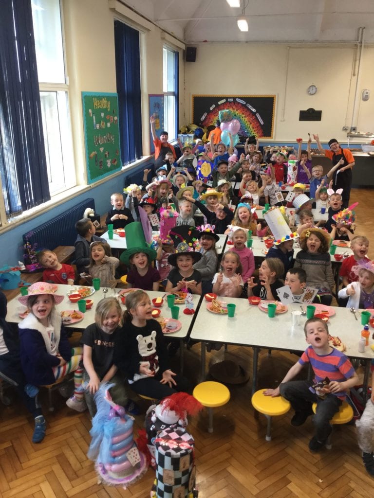 Instead of our usual school lunch, today we had a Mad Hatters Tea Party! The children made hats at home and came to school wearing them. There were some amazing designs. We all had a really fun time and were.