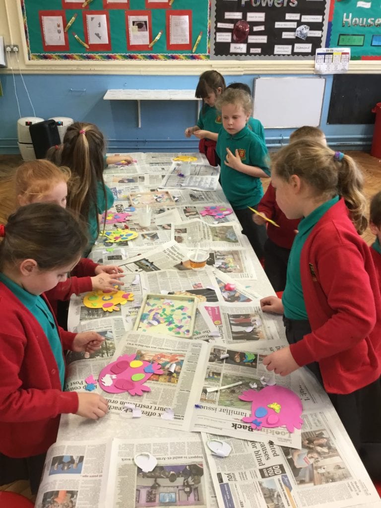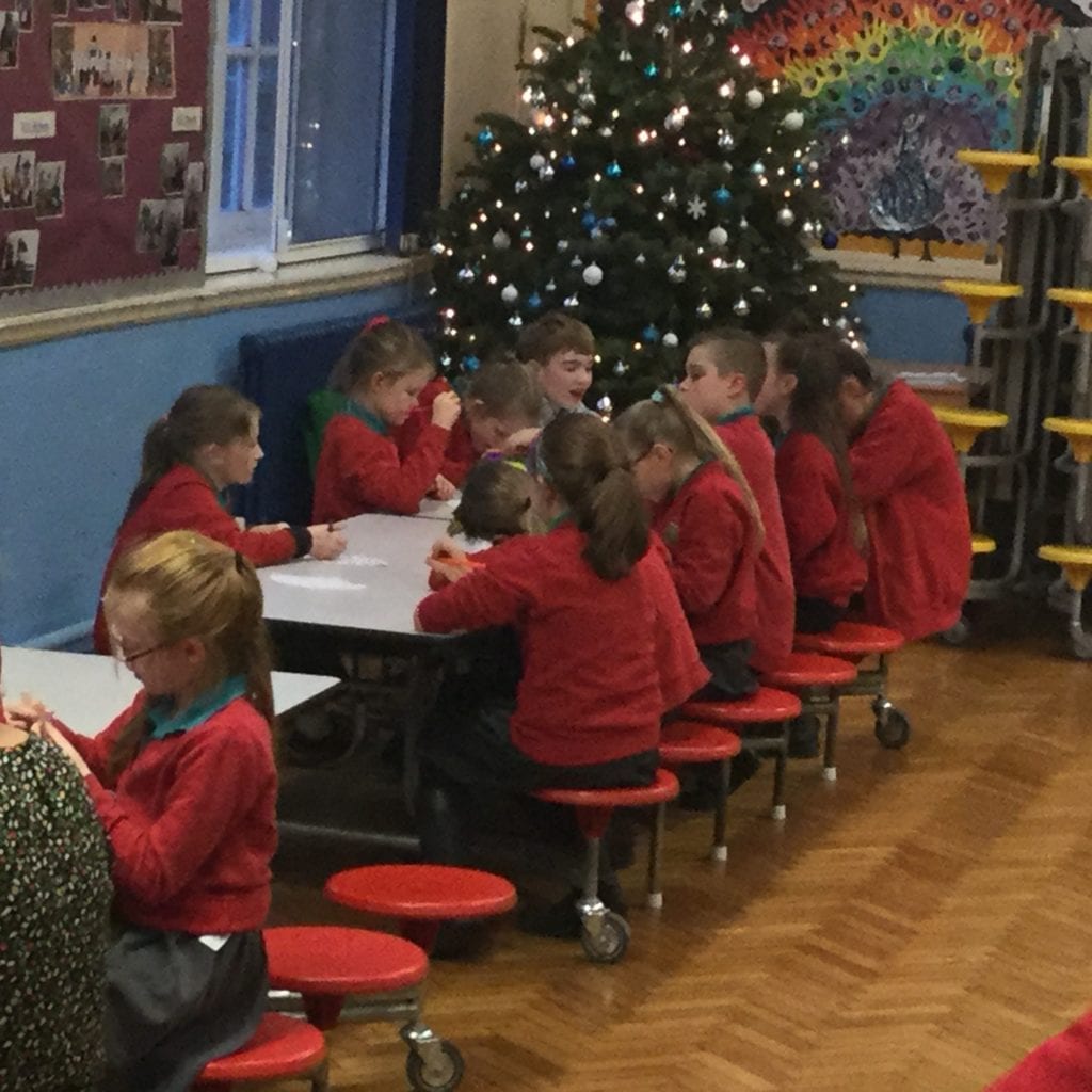 The children made decorations and a variety of Christmas items, baubles, table decorations, fridge magnets etc. Our school hall was very glittery after!