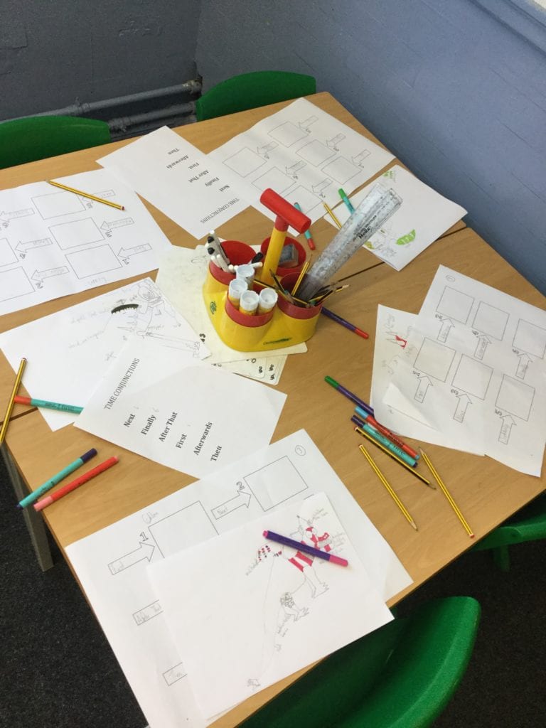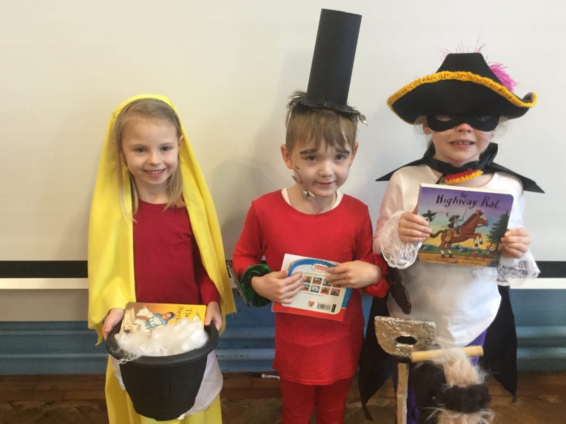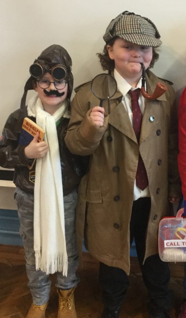 We had our own book day at school. The children completed a Cluedo Treasure Hunt, made gingerbread men, bookmarks, bridges for the 3 Billy Goats Gruff and danced in giraffe masks because ‘Giraffes Can’t Dance’.