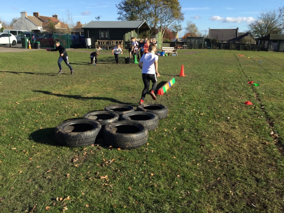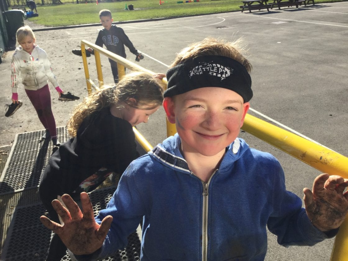 Rob Proud took us outside to participate in a range of different activities. He set up obstacle courses, tug of war competitions and a lot of different exercises. All of this meant that we ended up very muddy but had a great time!