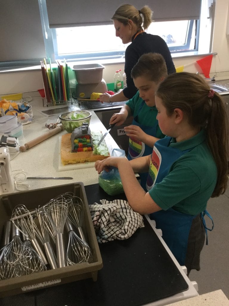 Lara & Joshua were accompanied by Mrs Bolton, Mrs Bedford and Mr Way to the finals of the Educate and Celebrate Great Rainbow Bake Off in London!! They qualified by making a cake in cookery club representing the Educate and Celebrate values.