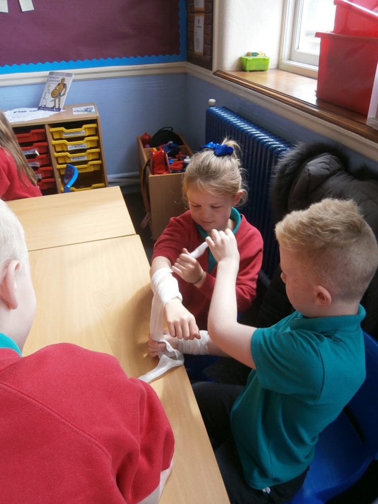 Year 4 & year 5 took part in ‘Flat Stan First Aid Training’. They were hands on learning CPR and practiced using bandages. We think we may have some potential medics in school!